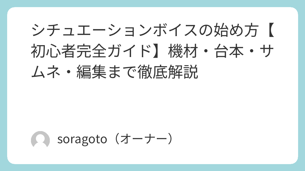 シチュエーションボイスを始めるにあたって、まとめると以下のとおりです。